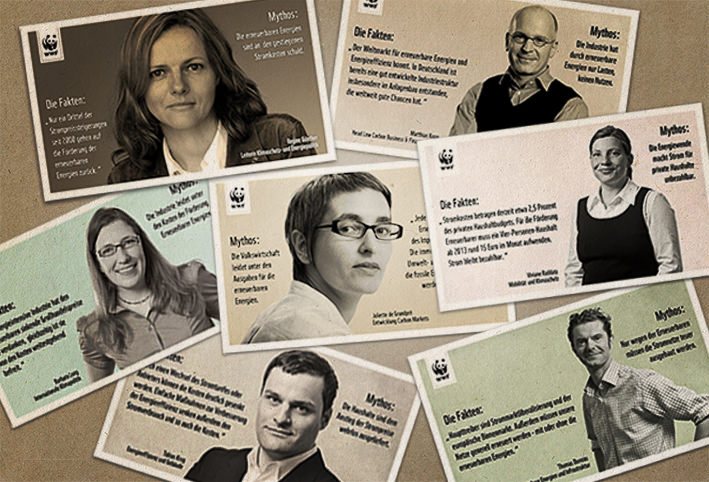 WWF Deutschland asked for a way to communicate the complex topic `Energiewende´ to their Social Media community. There are many rumours existing, so the goal was to put short statements with clear facts by WWF experts against the myths. We decided to use portraits of employees to let the user know who are the faces behind the quotes. The language is short and precise to catch the attention of the users.